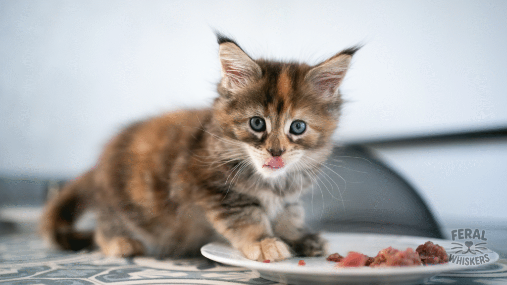 💡 Kitten diets are specifically formulated to meet these needs. Adult cat food isn’t sufficient.