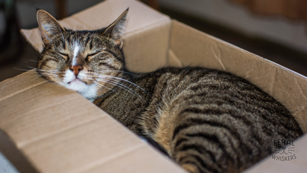 - A box helps them feel cozy, hidden, and less anxious in overwhelming environments.