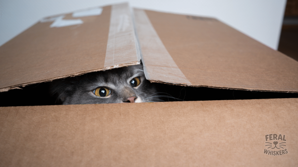 The cardboard box isn’t just trash to cats — it’s a castle, hunting blind, safety bunker, and stress-relief chamber all in one.