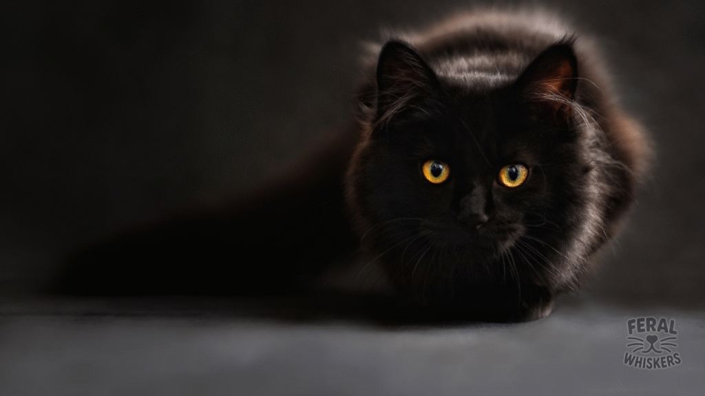 Cats’ vision thrives in darkness. Big eyes + staring shows hunting instinct… or midnight zoomie plotting.