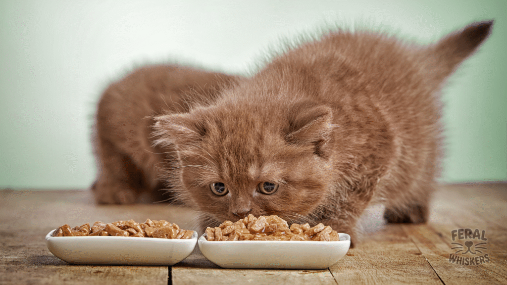 - High‑quality kitten wet food or balanced raw. Free feeding is acceptable here since they burn energy constantly.